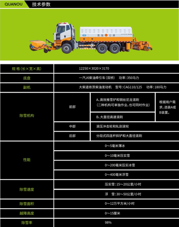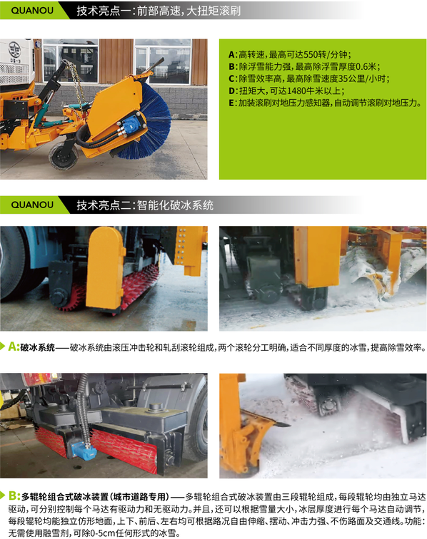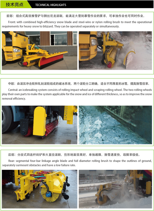 ①德国技术②.环保型、不使用融雪剂 ③.除雪除冰样样精通④.不损伤路面交通线⑤.除雪除冰效率高。