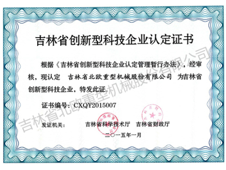 企业资质 当前位置:首页 > 企业资质 > 吉林省创新型科技企业认证证书