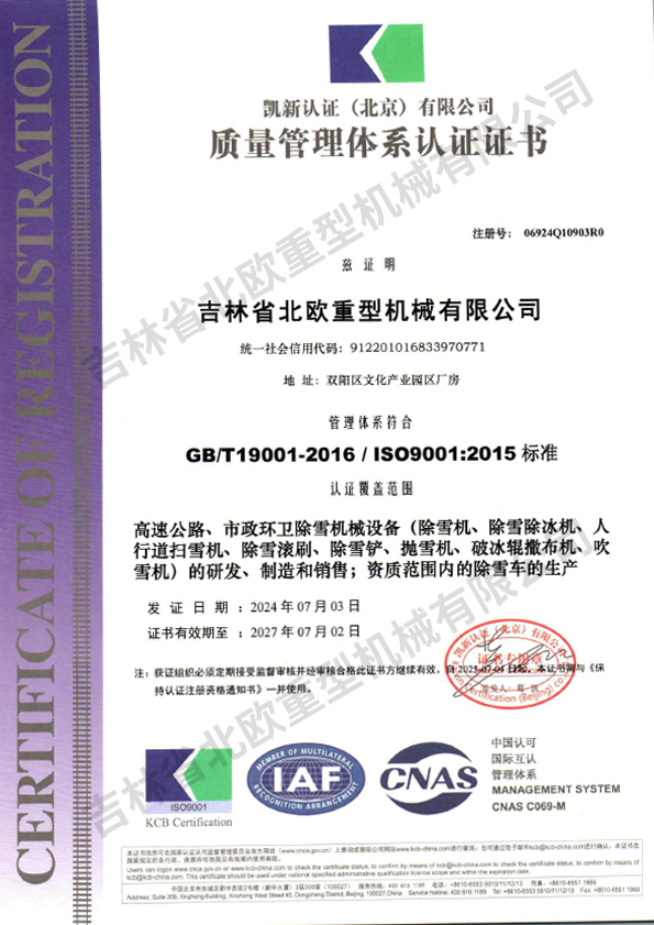 质量管理体系认证证书