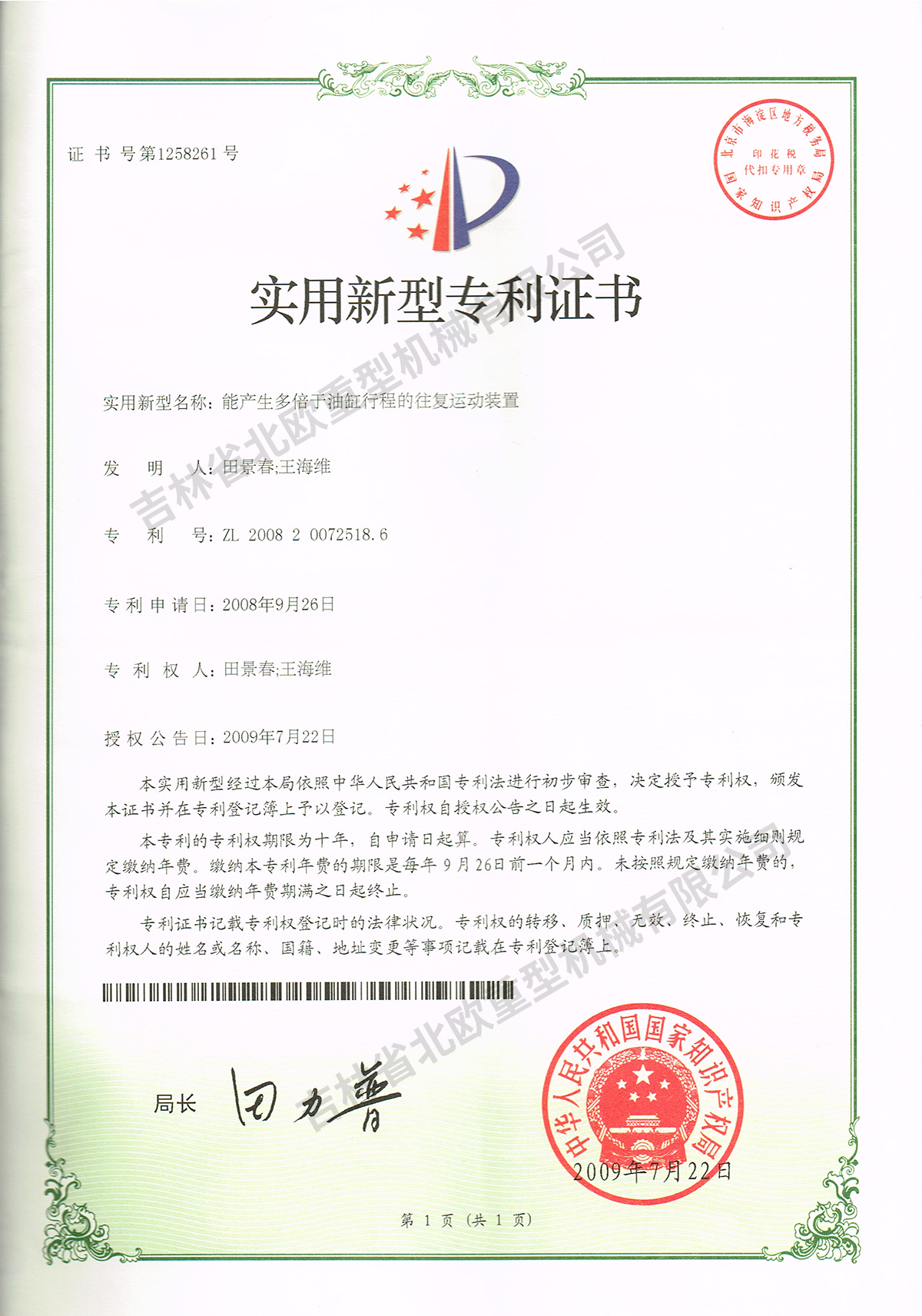 企业资质 当前位置:首页 > 企业资质 > 能产生多倍于油缸行程的往复运动装置