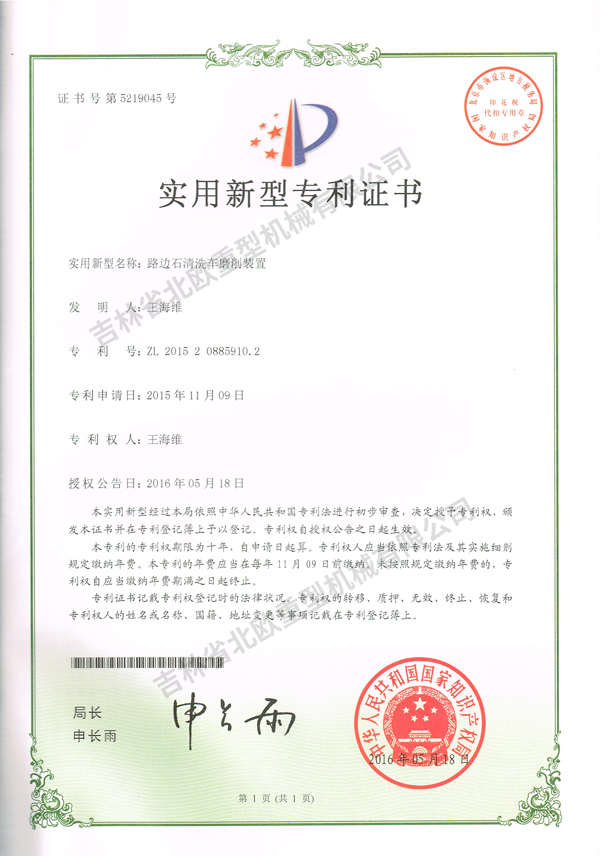 企业资质 当前位置:首页 > 企业资质 > 路边石清洗车磨削装置