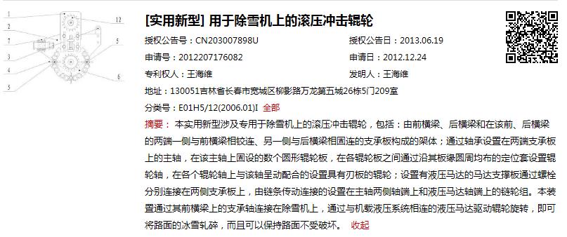企业资质 当前位置:首页 > 企业资质 > 用于除雪机上的滚压冲击辊轮