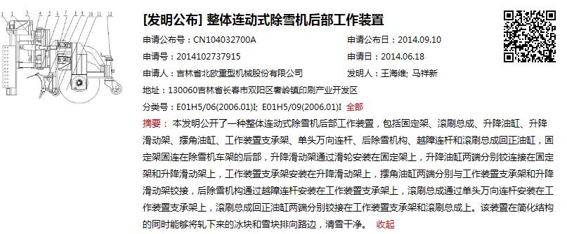 > 整体连动式除雪机后部工作装置