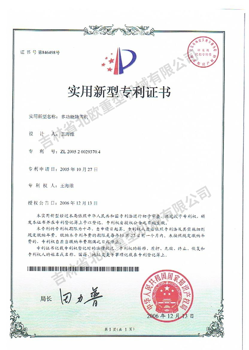 企业资质 当前位置:首页 > 企业资质 > 多功能除雪机